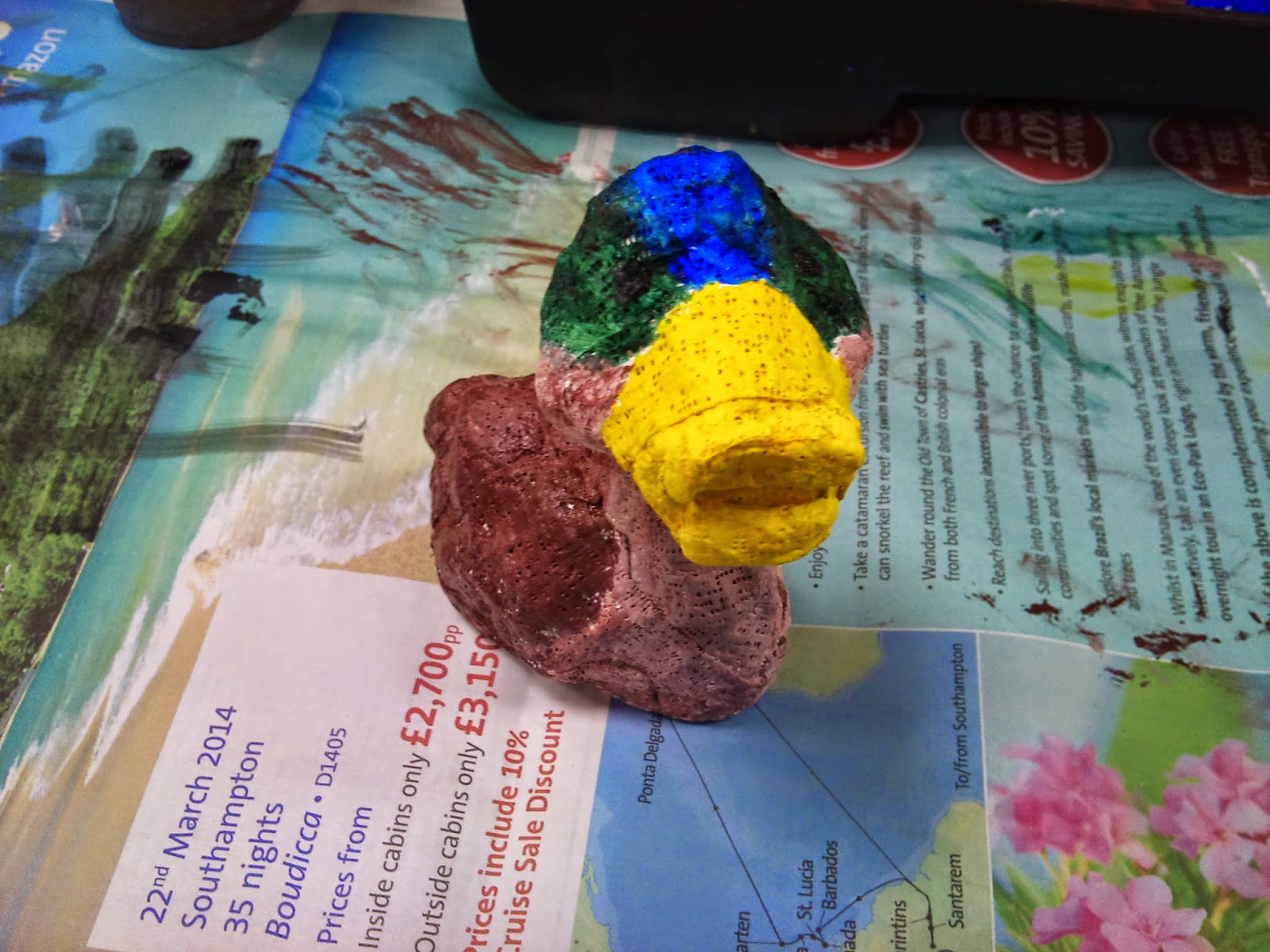 Previously to this we spent two weeks on creating our own plaster of Paris sculptures (term used incredibly loosely!). We started by constructing a rough model out of cardboard and newspaper, before we coated it in plaster of Paris to make it turn rock hard. The following week we then got to paint our creations, completing the process and turning my ambiguous white creation into a duck! It’s not all mucking about though, as prior to the finger painting week we had another life drawing session, which I find really pushes my drawing skills to the limit, but at the same time it also helps me to improve.